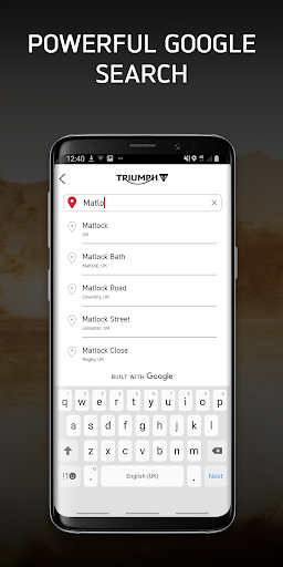 The new My Triumph app is built with Google and works in conjunction with the My Triumph Connectivity System to provide live navigation on your motorcycle via the TFT instruments. Facilitated by an accessory fitted My Triumph Connectivity Module, the app allows you to access the following great features: