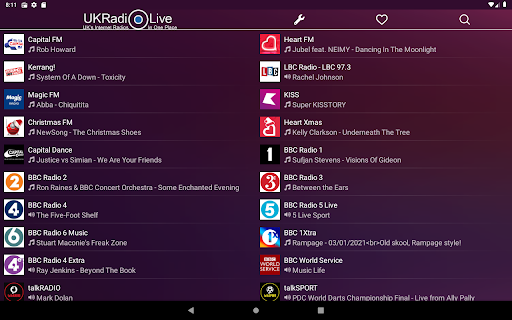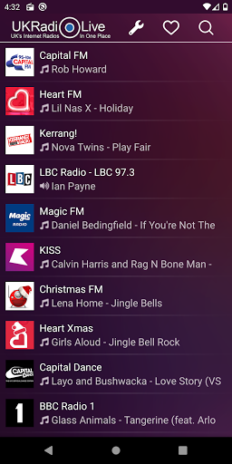 The radio app for our UK online radio aggregator ukradiolive.com is currently a fraction of the web interface, but we aim to have all the features available through the app in the future. There are more than 100 online radios of the UK are available to listen to. While listening to a radio, You can see the actually played song's title and cover, and You can search in the radio's playlist back for a month. Moreover, some radios have schedule, which shows the programmes one week ahead. Some radios support the webcam view, so they can be viewed, not just listened to. Look for this function on the radio's page header. You can set the actually listened radio as favourite, so later can be found easily. The paid version contains broadcast-recording, and song-recognition function, and its interface is free of advertising. You can find below the partial list of the available radios in the application. If You don't find your favourite radio, You should try to click on the search icon, on the header of the application, type the radio's name, and launch the search for it. The search-function supports the voice-based search, in case of You can't type.