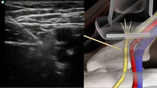 A unique system that combines live sonoanatomy via ultrasound scans, 3D animated anatomy and real time video of the performance of regional anaesthetic nerve blocks. All elements are combined and synchronised with audible narration.
