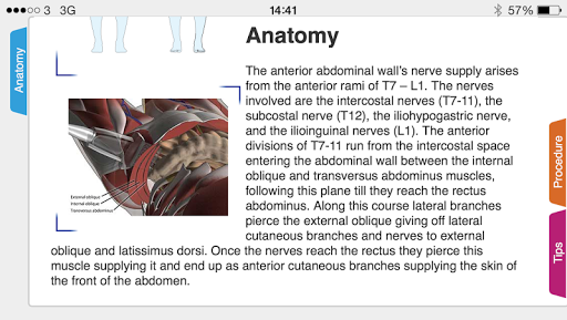 * Easy accessed tabs for Anatomy, Procedure and Tips.