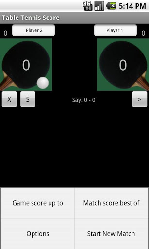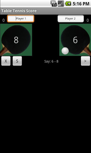 When a point is scored, click on the side that won the point. The ball is displayed with the player who has service. Status text shows which way round to announce the scores.