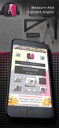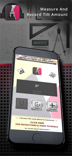 3 Grams Tilt level Meter is an app that allows you to measure the tilt of a flat surface such as a shelf, in a similar way to a level meter. The reading is shown in degrees and when its a zero it means the phone and the surface it is on is straight horizontally. It measures from 0 to 90 degrees.