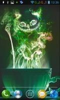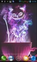 Cheshire cat appears from colored smoke live wallpaper. To keep free, application contain advertise.