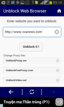 Unblock Website Browser help you unblock any websites such as Facebook, My Space, Youtube, Google, Wikipedia, VOA News, BBC News, ... any time, every where ! With Unblock Website Browser, you can easy access all the favorite sites by most simple way and completely free !