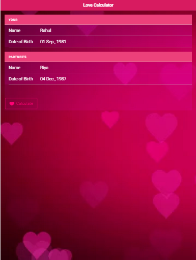 Love is the most beautiful emotion. Love Calculator app calculates your love compatibility with your partner.