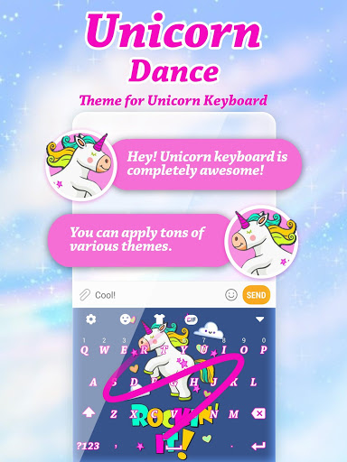 ❤ Dear girls, welcome to the world of unicorns - where the magic begins! Don't miss the chance to have the cute unicorns on your keyboard! Designed specially for all cute girls out there, this lovely "Unicorn Dance Free Keyboard Theme" changer will simply exceed all your expectations and will give your phone a totally new shine! Enjoy texting message like never before thanks to your new Unicorn Dance Free Keyboard Theme!