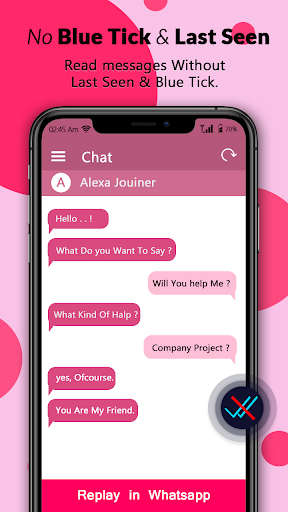 Whatseen : no last seen for whatsapp, is a sample tool to read incoming messages without read sign and showing blue tick, Hide online status and Unseen Last seen on Chat Applications.