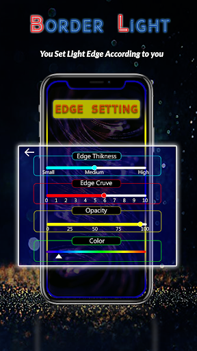 Border Light Edge Lighting Colors live Wallpaper is best tool to set Screen Live wallpaper on your phone screen and Display. It allows users to apply notch settings in Edge Effects, you can also adjust your notch settings with change height or weight.