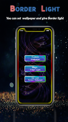 Phone display multicolor border light : this app shows a slowly moving colorful border around the edge of your screen. It can be adjusted to fit any screen, with or without a notch. Border Light app is the live wallpaper that provides you amazing gradient shining border Light.