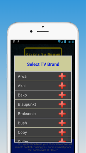The application uses the IR port of the mobile device, so if your device has not IR port, the application does not work. Not all TVs are supported.