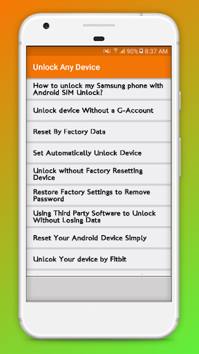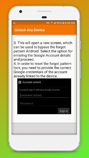 account and much more features. Everyone needs to secure data or preventing unauthorized use of his data in this modern era. One method to protect your phone data is to lock your phone screen by pattern, pin or in other way like face recognition. This app provide guide to solution of problems of device locking or unlocking. Easy Unlocking Guides Process Explained.
