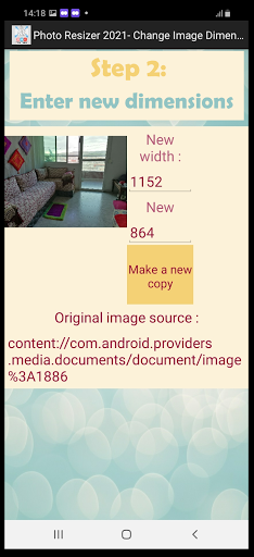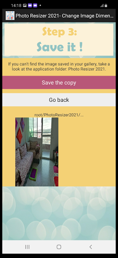 -> If you can not find the photo created in your gallery, you can search for it in a folder named "/ PhotoResizer / .."