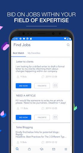 - Search for jobs, bid on them