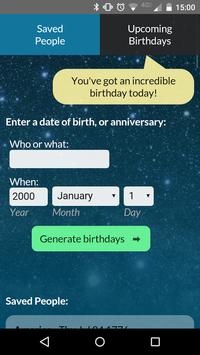 - Add friends & family, and get fractional birthdays (e.g. "Ted is 1/2 the age of Beth today")