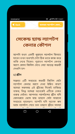 Tips to buy second hand things is trips and tricks related bangla educational app. Many of us look for used things or old things to buy as they demand low price. By being cost effective we often get worse things. And that's why we made this bangla educational app to give you the proper tips about buying second hand things such as: