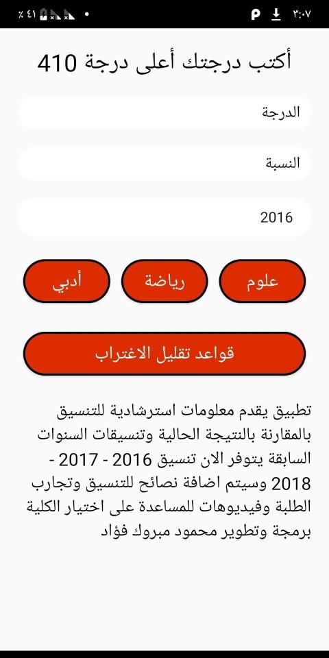 هدف التطبيق ان كل ولي امر وكل طالب يتمكن من رؤية التنسيق في أي وقت وفي أي مكان بدون حتي ان يكون هناك اتصال بالانترنت سواء علمي ام ادبي