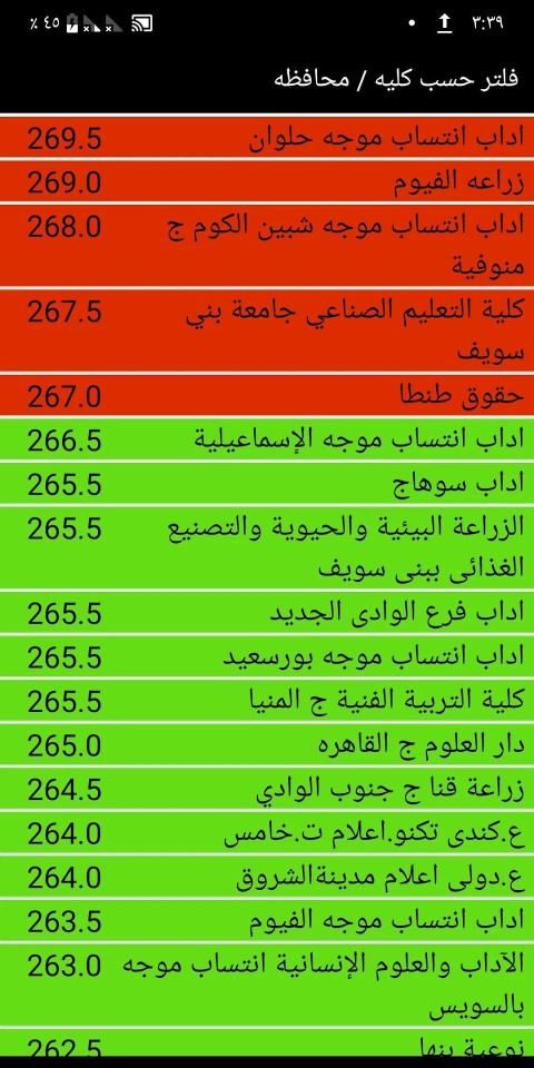* معرفة الكليات المسموحة بالتصنيف اللوني (أحمر -> درجة أعلي من درجتك ؛ أخضر -> درجة أقل من درجتك )