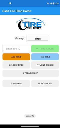 The Used Tire Shop Tire Inventory App is designed for Tire Shops, Car Dealers and Auto Recyclers interested in managing their new and used tire inventory. This mobile app works in conjunction with our full web based version of our Tire Shop management software.