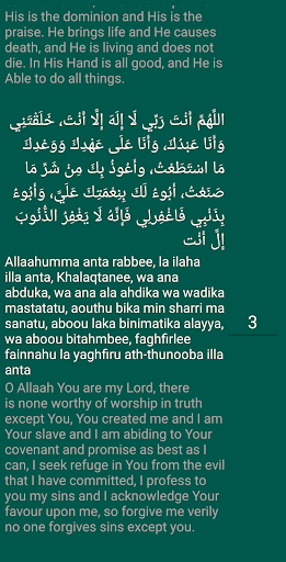 - Indicates the end of the dhikr by vibration and sound. You can control the volume and vibration yourself.