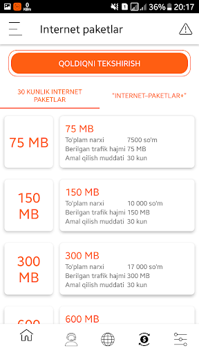 ✭ Internet, sms va ovozli paketlarni faollashtirish