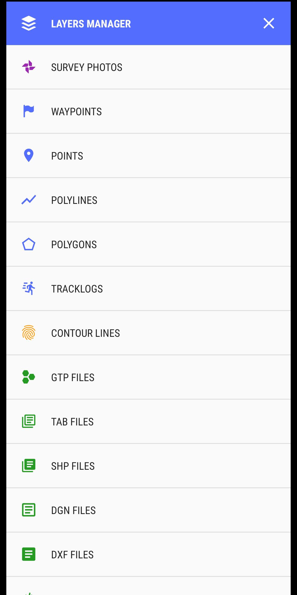 - Support directly opening common data such as Excel, GPS/GPX, KML/KMZ, GeoJSON, AutoCAD DXF, MicroStation DGN, ESRI Shapefile SHP, MapInfo TAB, gCadas GTP