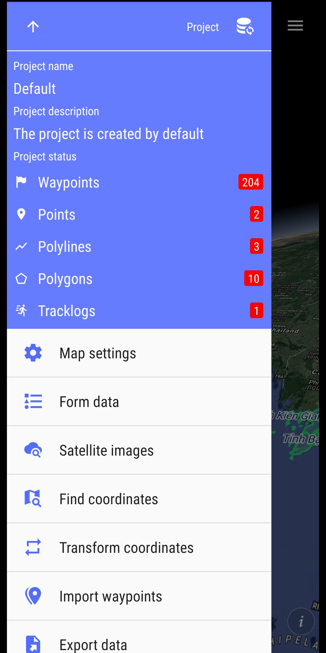 - Support export data to GPX, KML, GeoJSON, Excel, AutoCAD DXF, MapInfo TAB, Shapefile SHP format and share via Email, Drive, Zalo, Facebook etc.