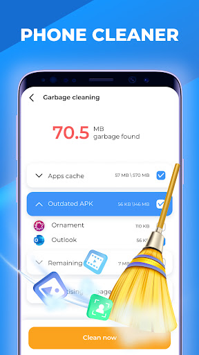 - Antivirus: removes viruses and improves security. The antivirus scans all installed APKs, detects and deletes viruses in apps on your device.