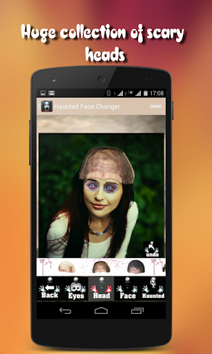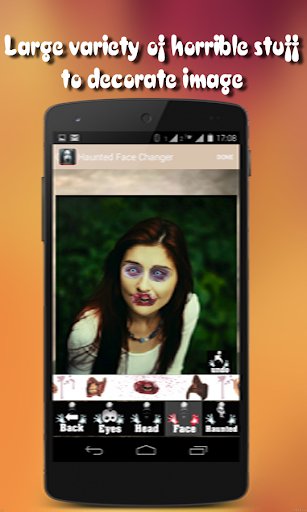 Haunted face changer app has awesome variety of funny spooky stuff by which you can create cool haunted pics using halloween makeup and share it over your social world.