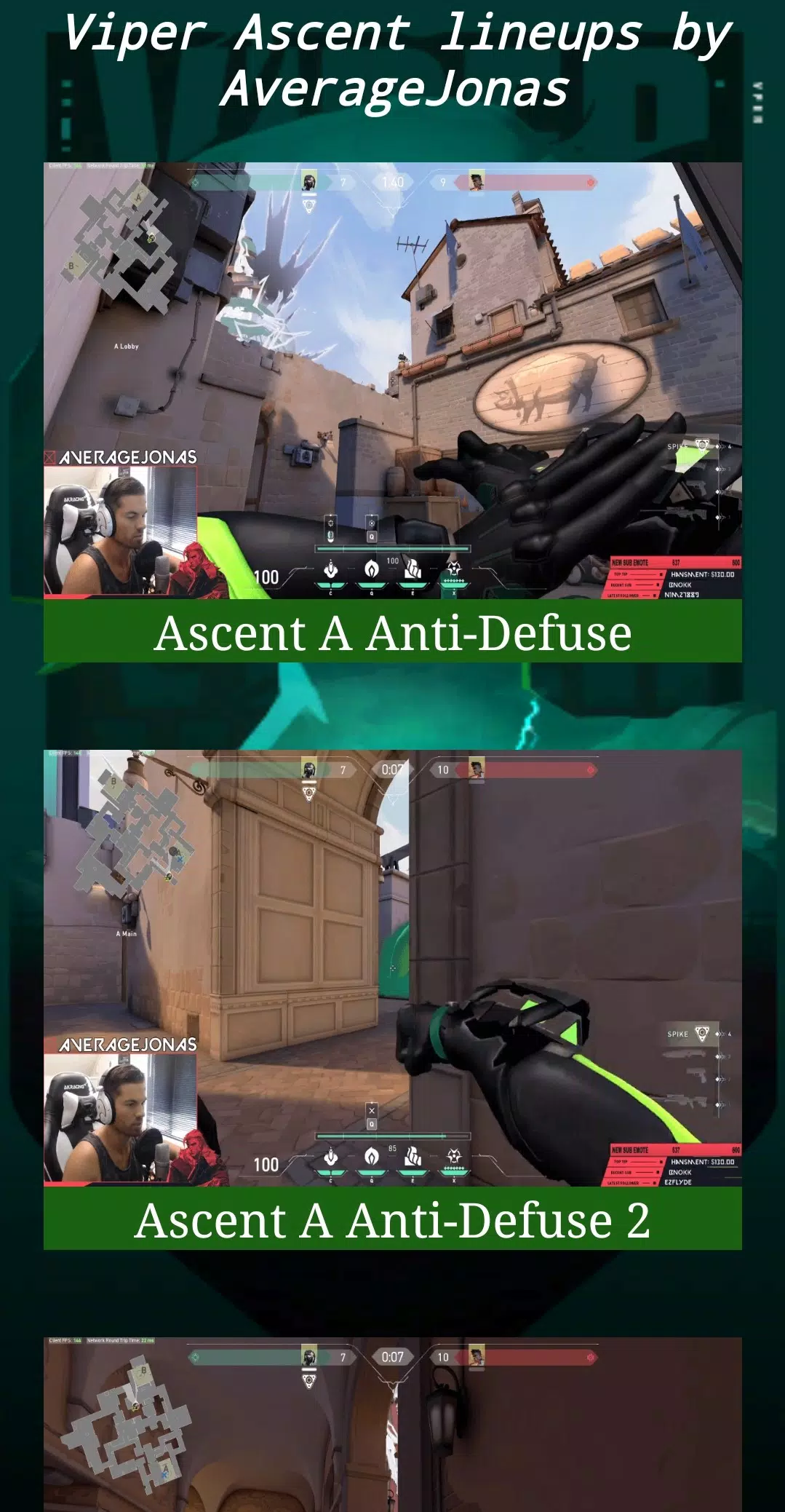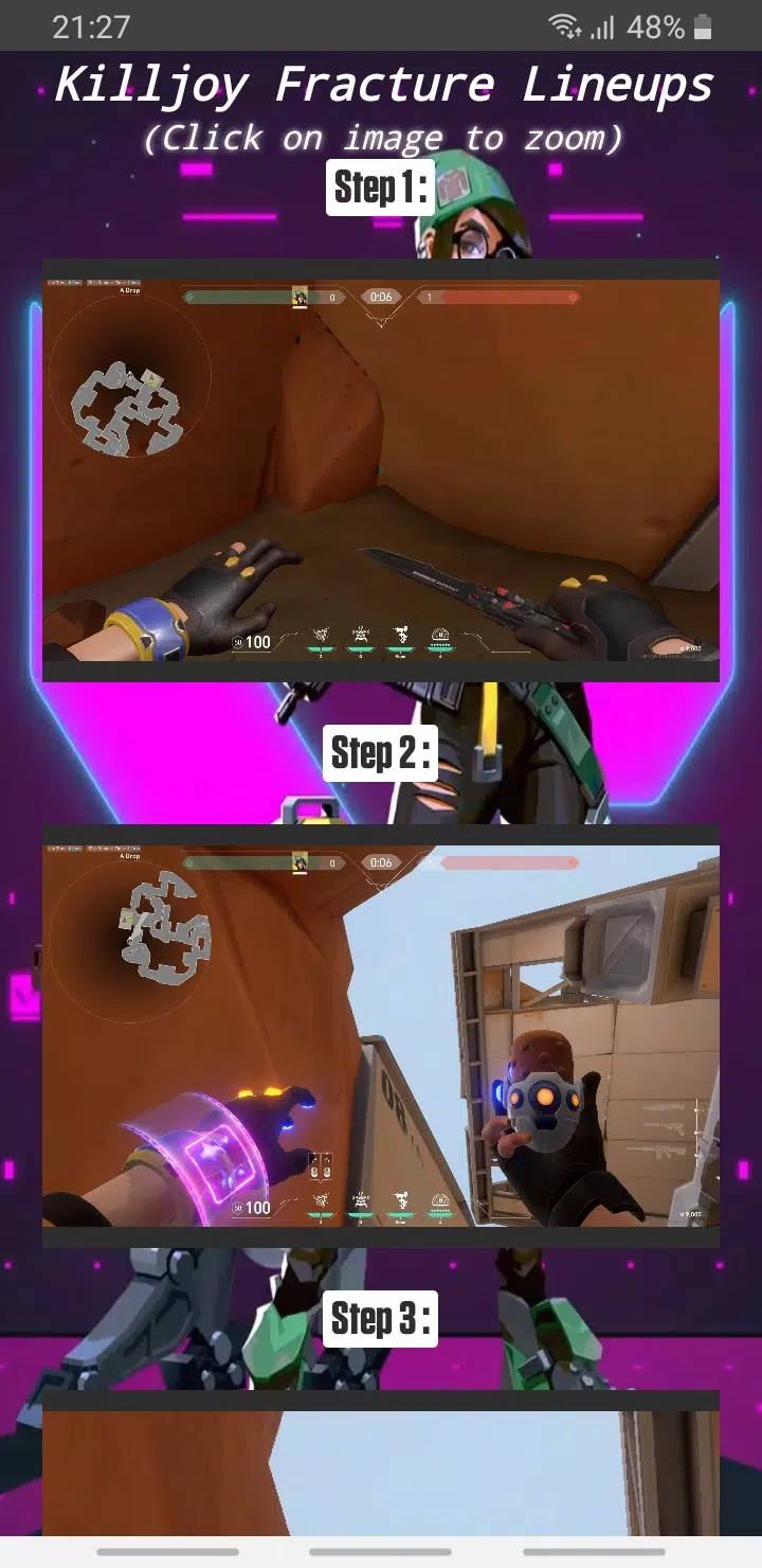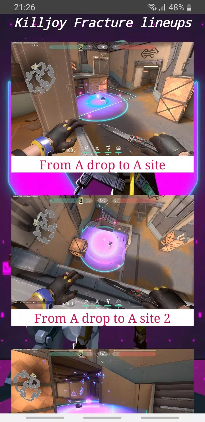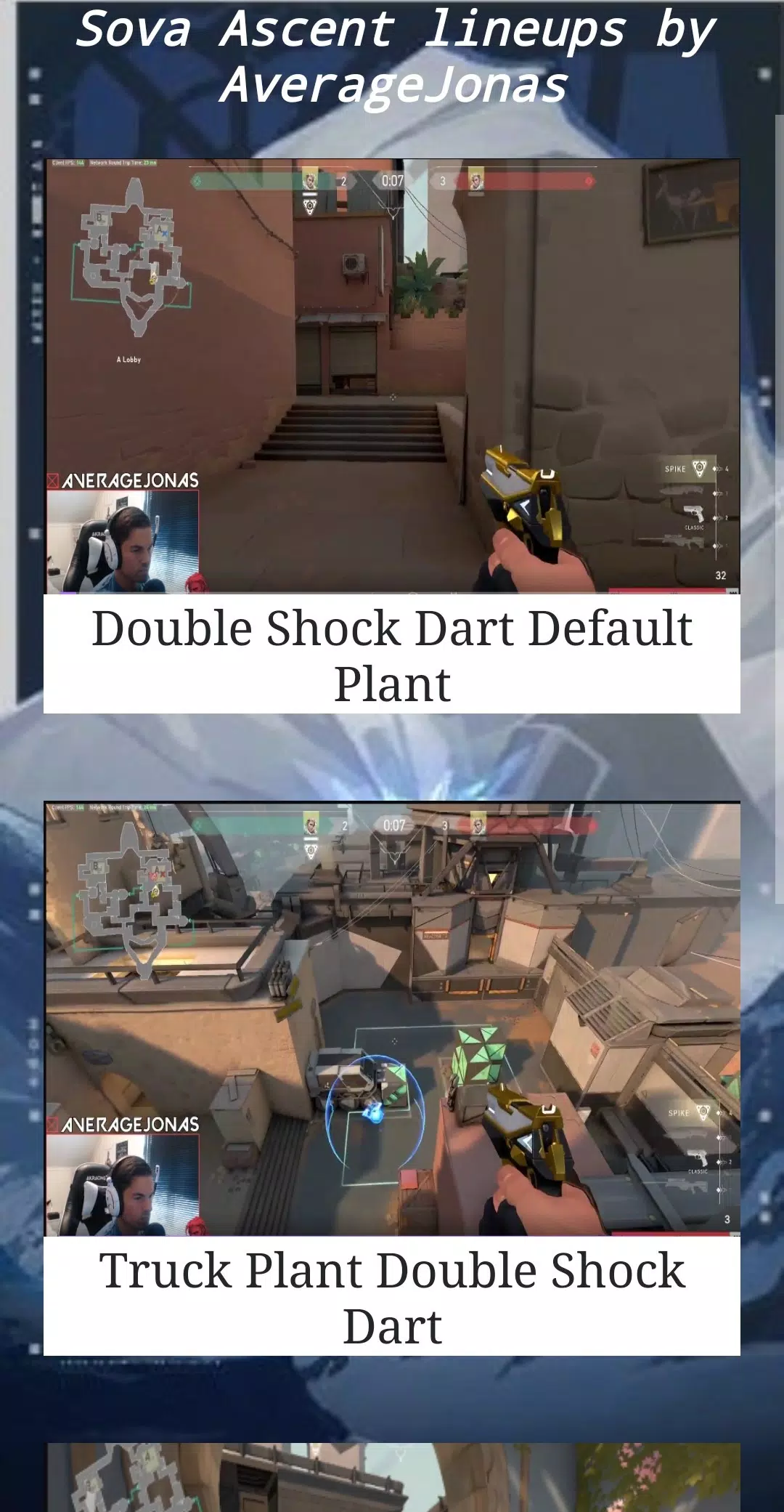 A valorant App guide that contains a lot of lineups clips from famous players and twitch streamers.
