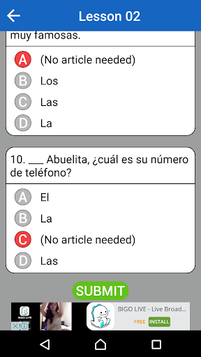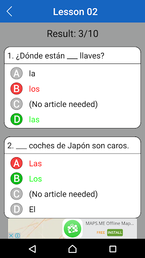 “Learn Spanish” is an application with more than 10.000 multiple- choice exercises- For all learning levels in Spanish.