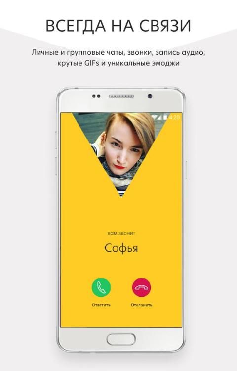 Messendzher Veon will allow you to comfortably send and receive messages, make calls, record audio, chat in the group chats, share gif-animations, share videos and pictures.