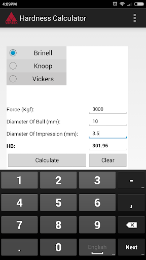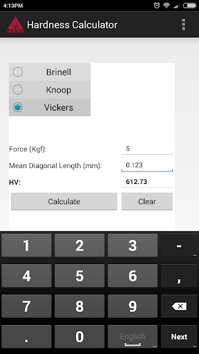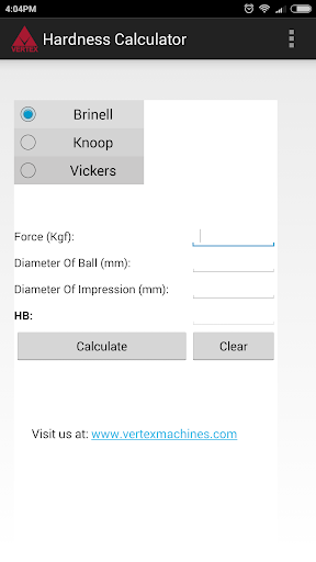 Just download the app and calculate the Hardness value. Hardness calculator by VERTEX Engineers & Associates, Manufacturer of variety of Hardness Testers.