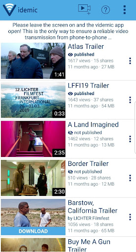 Attend an event of a videmic partner and get notified anytime when you can download making-ofs of movies or TV series, case studies or cool promo videos on your phone that will be made available only for the attendees of the festival or symposium and will not be published via the internet.