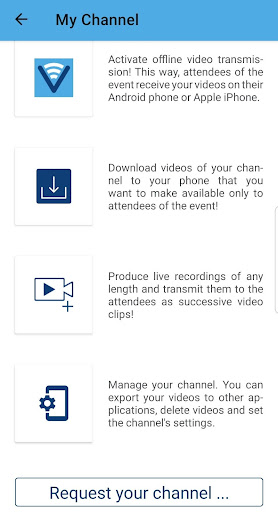 - Get notified at events anytime when you can download premium videos to your smartphone that are not published via the Internet.