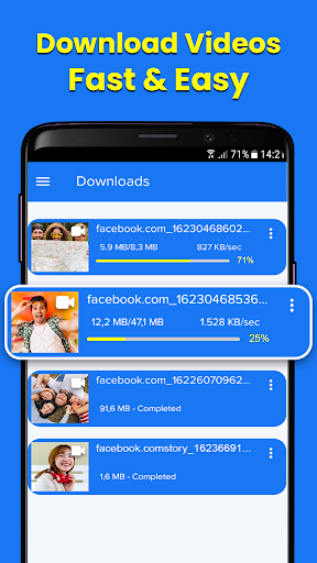 Free video downloader for Facebook-fb video saver save your time a lot. The security of your privacy is guaranteed to the maximum extent possible. Video downloader for Facebook saves Facebook downloaded videos to gallery and can be played offline.