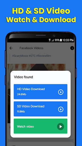 Video Downloader for Facebook is a lightweight app that can help you download HD videos from Facebook. Downloader with very easy to use operation, you can easily download high quality videos by following simple steps via link and built-in browser. This is a totally free app, helps you save videos from Facebook news feed, groups, pages, friends, etc.