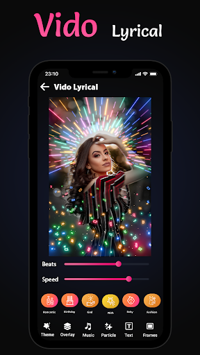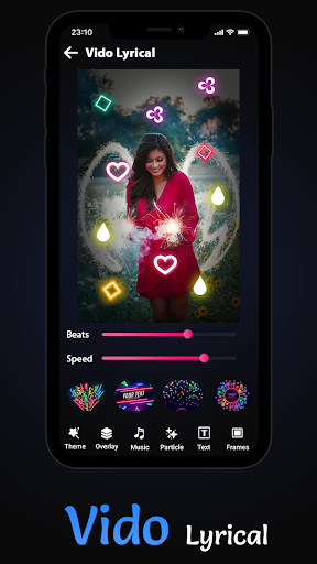 Vido video maker with song is a Lyrical Video Status Maker and Particle Photo Status maker.
