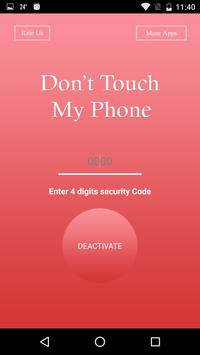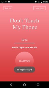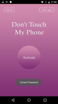 Don't Touch My Phone is a security provider app, which will protect your smart phone from thieves, friends, brother, sister or any other family or relative person which you don't want to touch your phone.