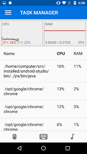 - Task manager, view your running processes, CPU/RAM usage, kill processes eating up too much computing power