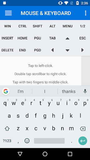 - Use touchscreen like a laptop touchpad, or type with the android keyboard