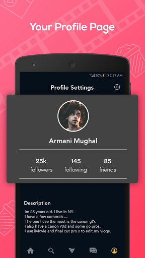 Create your channel, select category and start uploading your video blogs or vlogs to become the next vlog star. Grow your following base and attract more audience by simply posting great content. Use your camera to vlog directly or upload an already existing video. Use our video editor to trim and edit your vlogs with ease.