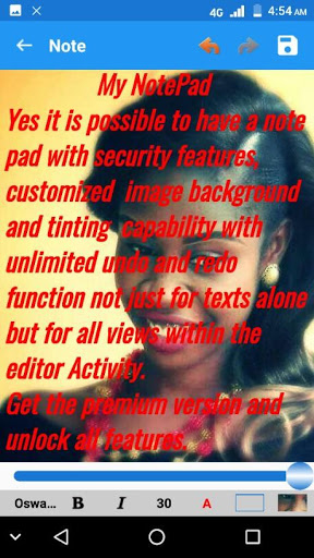 My Note Pad Is a great app which comes with security feature for protecting your note from anyone. It can also edit, save and open notes in a rich text format and customized background.