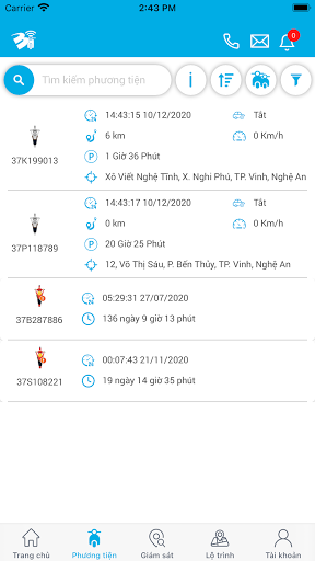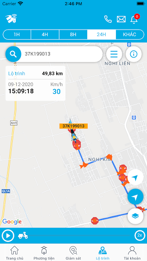 5. Xem lại lộ trình di chuyển cùng với các thông tin khác của xe tại bất kỳ khoảng thời gian nào