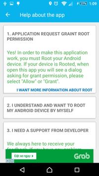 - Only works on rooted devices (needs super-user permissions).