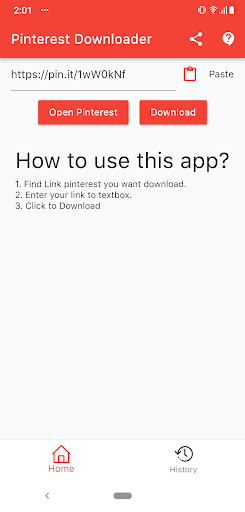 Video Pinterest Downloader can view history and share link Pinterest or link video for friends. 🔍 You can also use it to review history downloaded video.