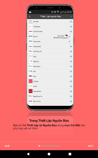 Koran hari ini adalah aplikasi untuk membaca koran umum dari situs berita terkemuka di Vietnam seperti VNExpress, Dan Tri, Vietnamnet, Thanh Nien, Youth, Channel 14, Delicate, Sports 247, 2Sao .. Br> Surat kabar ini dibuat maksimal Bantuan untuk membaca koran untuk orang tua.Surat kabar selalu memiliki target mudah digunakan pembaruan berita dengan cepat, mendukung pembacaan berita dengan berhenti tetapi tidak perlu.