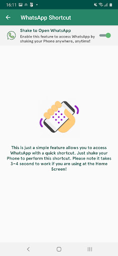 - WhatsShake for WhatsApp will enable you to open WhatsApp by just shaking the mobile device. Speak open WhatsApp command to open WhatsApp instantly.