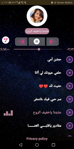 نقدم لكم تطبيق اغاني بدون نت وجوده عاليه في الصوت وتحديث مستمر لكل ماهو جديد للفنانه ماريا قحطان .