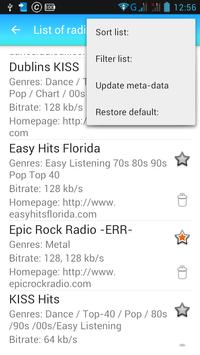 - You can sort and filter list of radio stations, for example showing only your favourite stations or searching for radio with specified name or genres.
