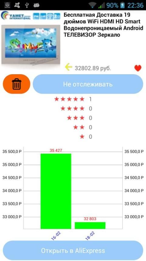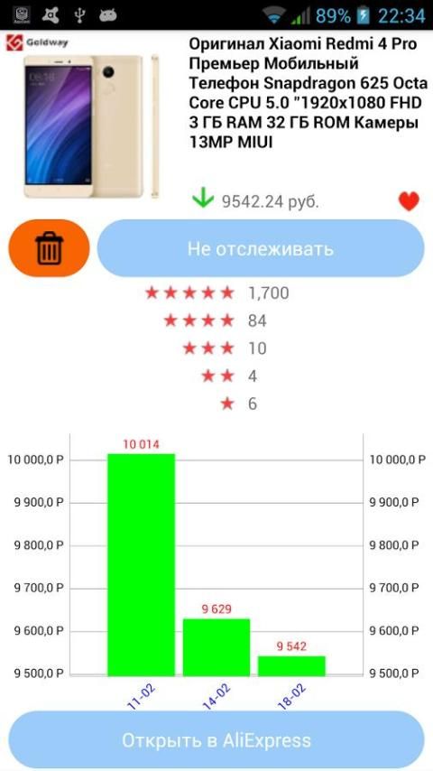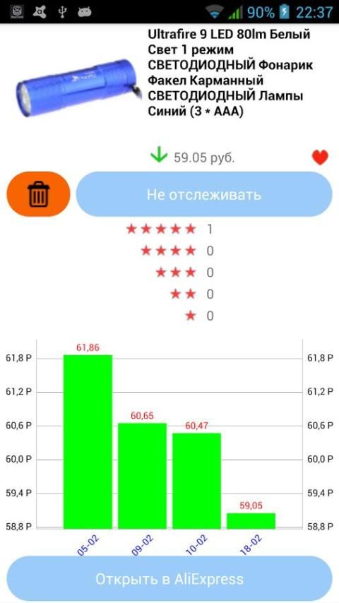 Application to track the price of goods you have selected to Aliekspress in rubles.